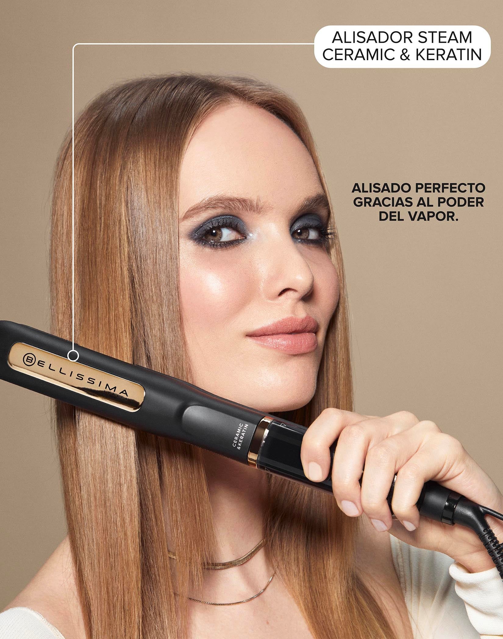Plancha de vapor profesional con revestimiento de cerámica y queratina que favorece la protección del calor, asegura una perfecta suavidad y deja tu pelo suave y vital.